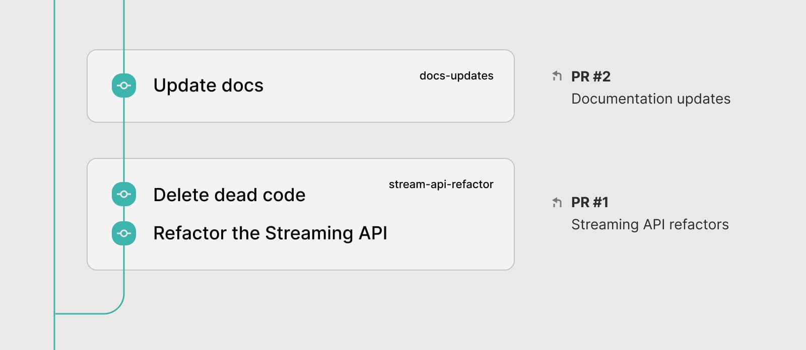 Using stacked branches (Pull Requests) can be helpful for shipping smaller changes more frequently.