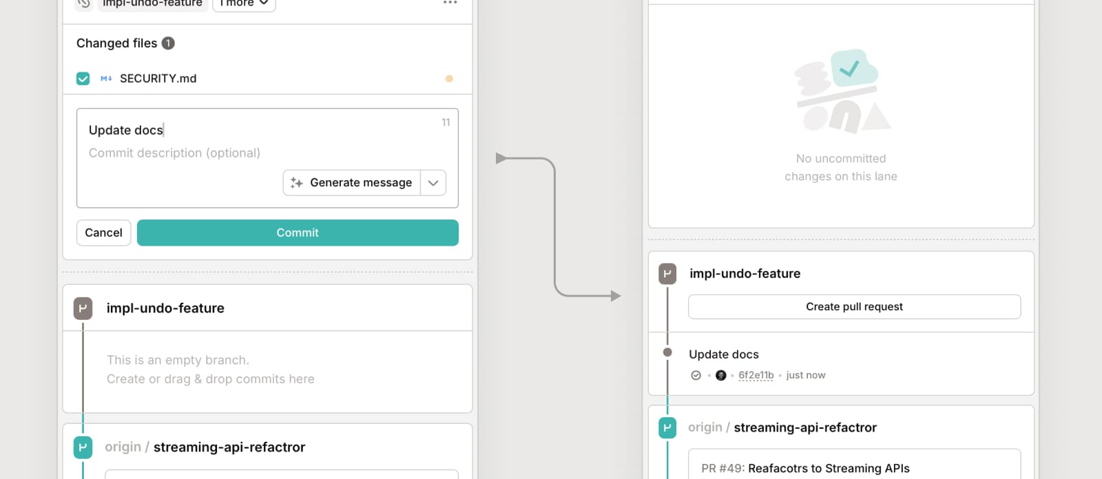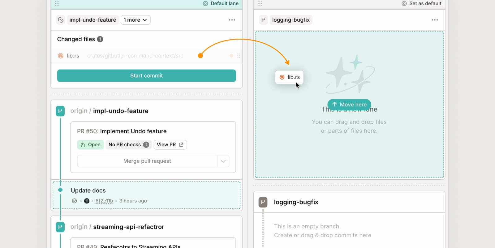 - If a change in your stack is independent (e.g. an unrelated bugfix) it can be moved to a different virtual branch (or stack). This works for both uncommitted changes and existing commits that you may want to relocate.