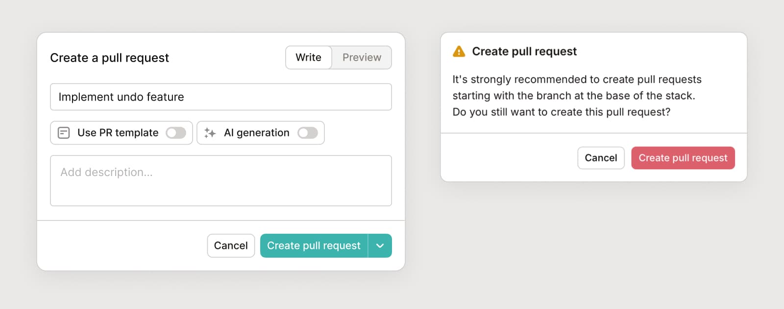 - Pull requests must be created one at a time starting from the bottom of the stack.